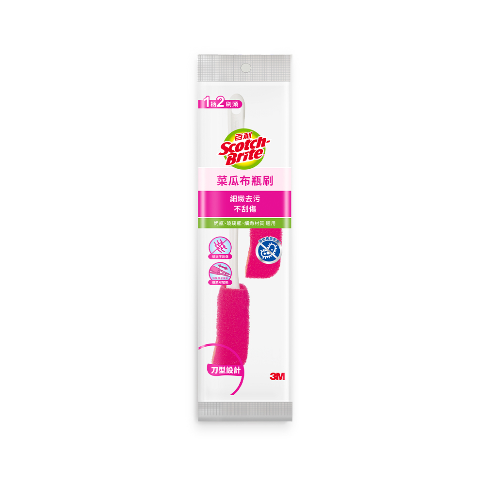 【3M】百利菜瓜布瓶刷-粉-1柄2刷頭