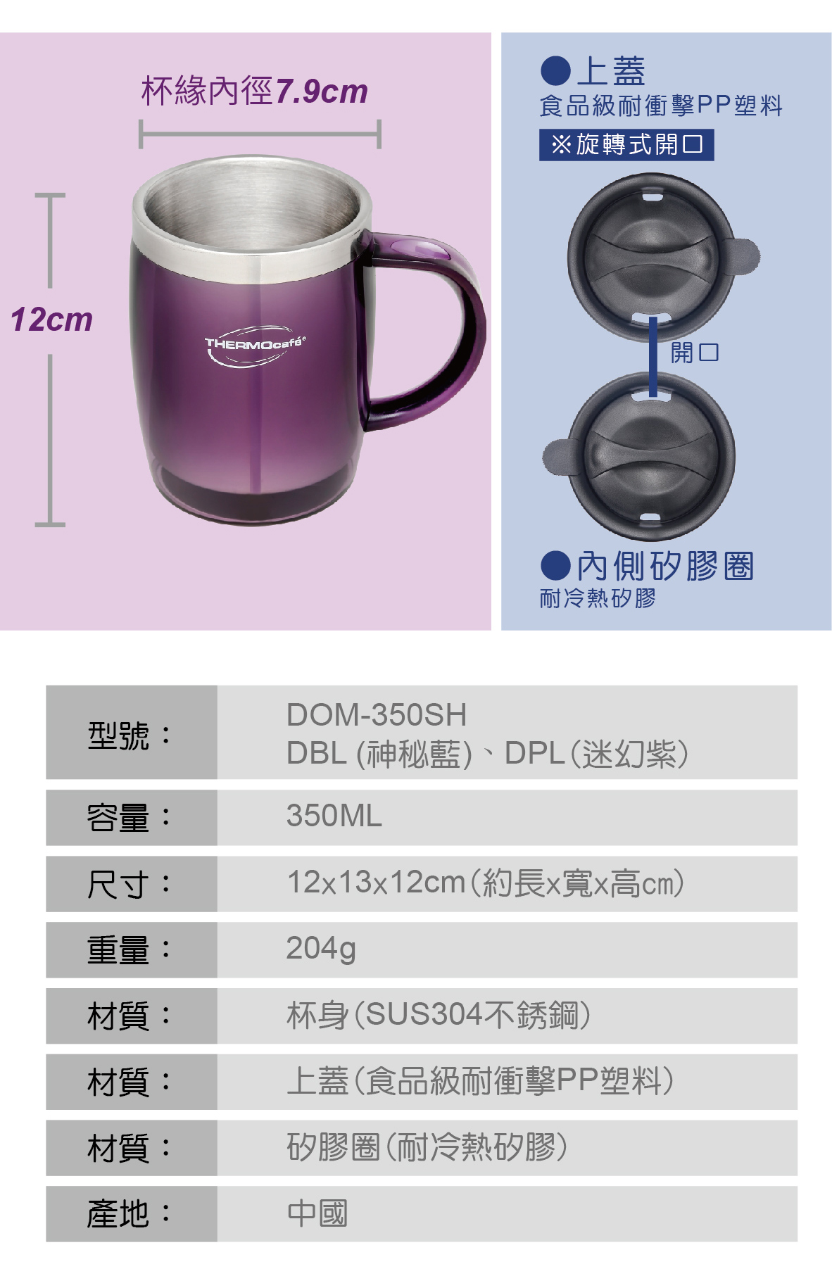 - 杯身︰SUS304不銹鋼、杯身外殼︰聚苯乙烯 PS