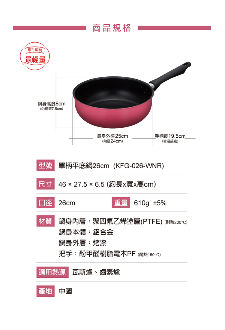 鍋身外層:烤漆/把手:酚甲醛樹脂(電木PF) (耐熱150℃) -