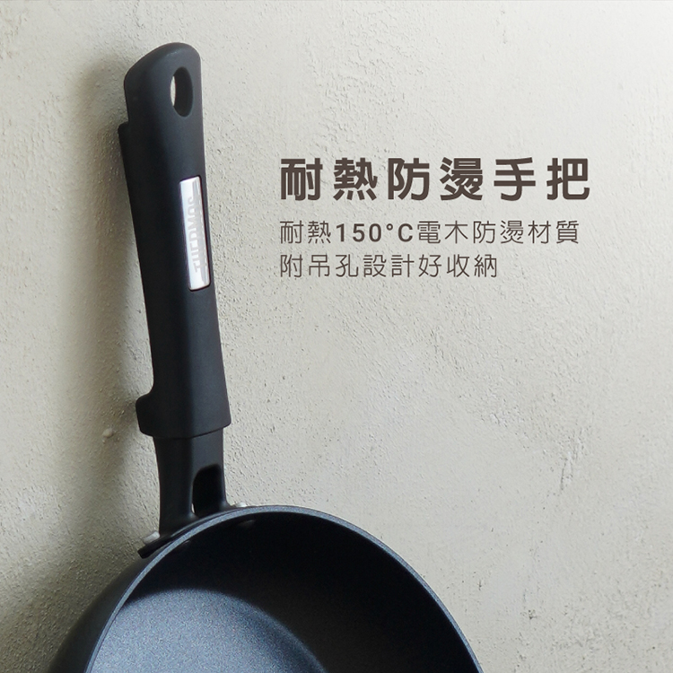 鍋身外層:烤漆/鍋底:SUS410不銹鋼/把手:電木PF (耐熱150°C)