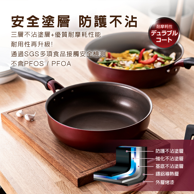 鍋身外層:烤漆/把手:酚甲醛樹脂(電木PF) (耐熱150℃) -