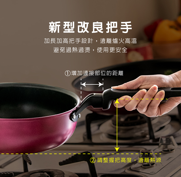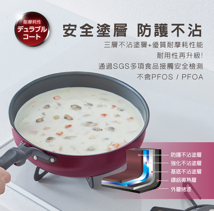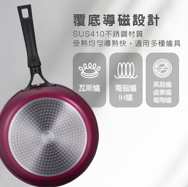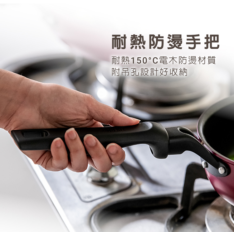 鍋身本體:鋁合金、鍋身外層:烤漆、鍋身底部:SUS410不銹鋼