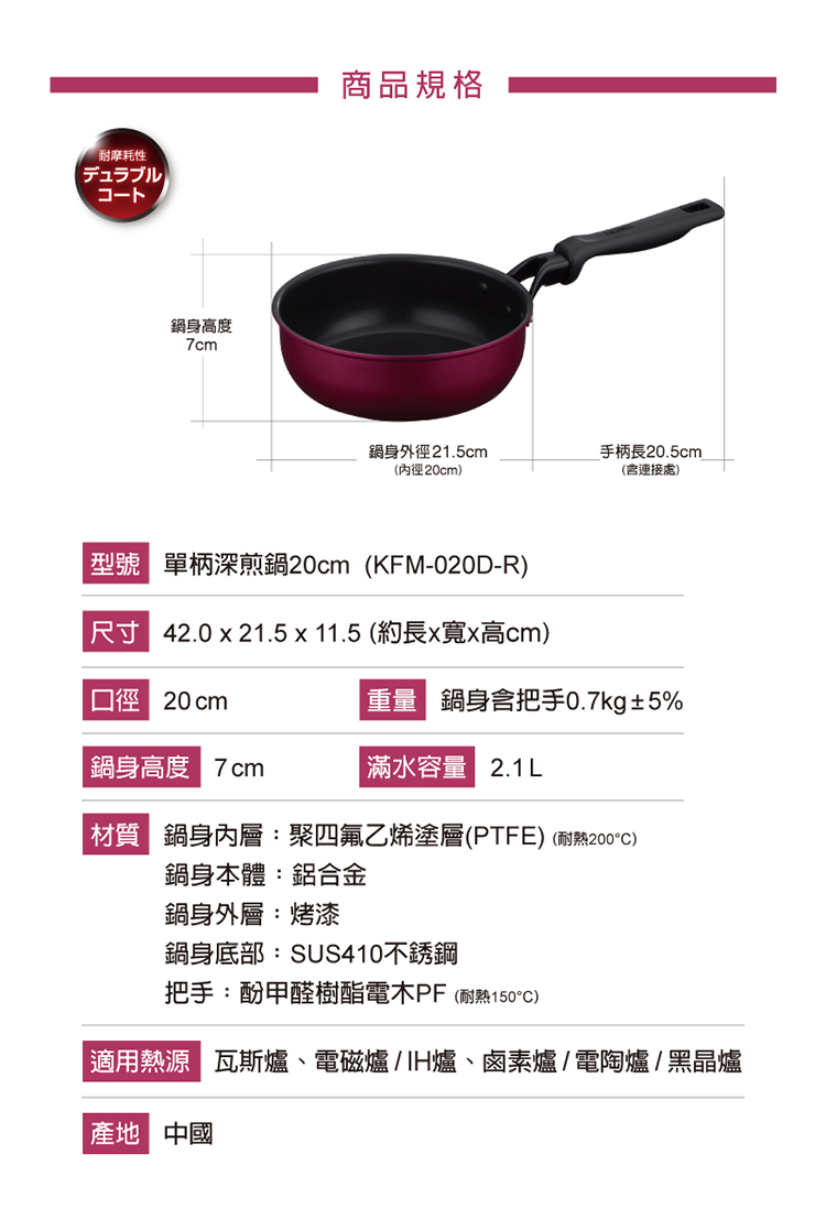 - 鍋身含把手0.7kg±5%