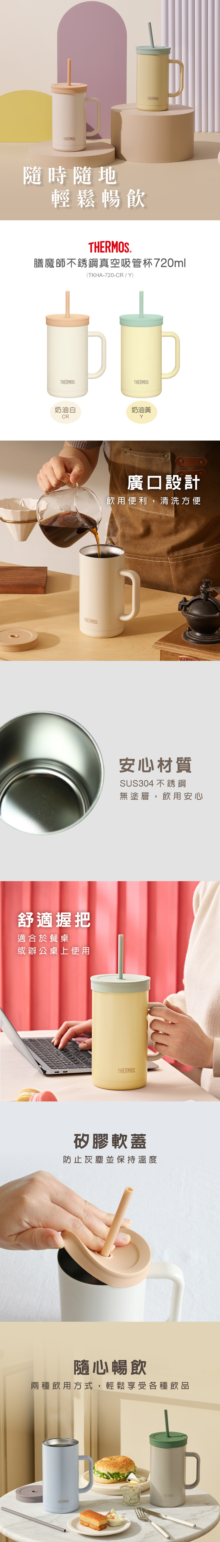 【THERMOS膳魔師】不銹鋼真空吸管杯_TKHA系列_720ml_奶油白