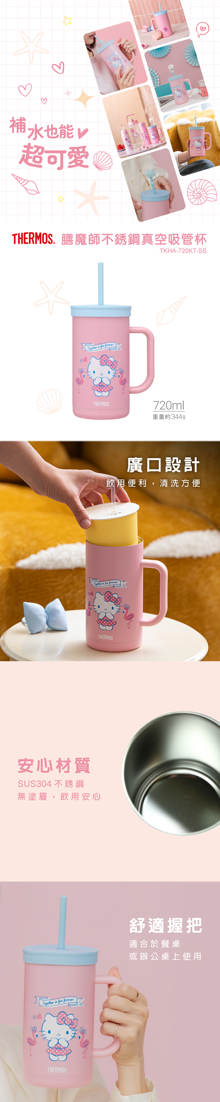 【THERMOS膳魔師】不銹鋼真空吸管杯_TKHA系列_720ml_Hello Kitty夏日貝殼篇