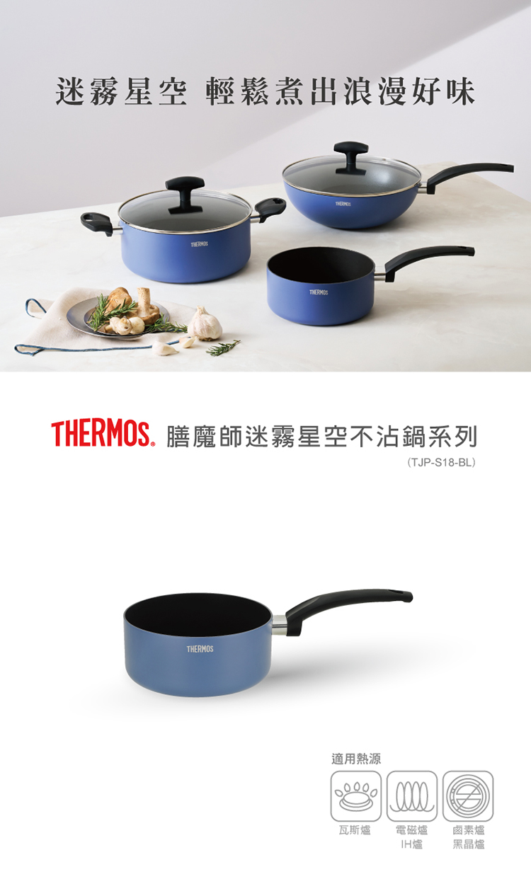 【THERMOS膳魔師】迷霧星空不沾鍋_TJP系列_單柄湯鍋18cm