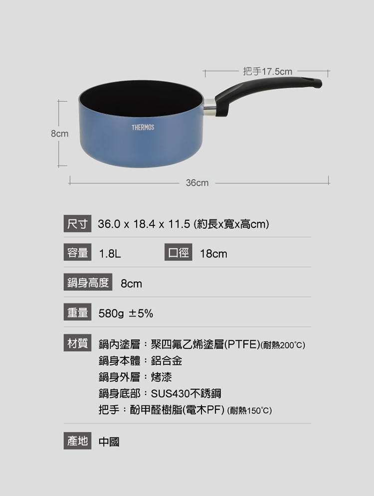 鍋底:SUS430不銹鋼/把手:酚甲醛樹脂(電木PF) (耐熱150℃)