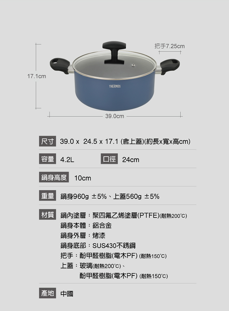 - 鍋身960g±5%/上蓋560g±5%