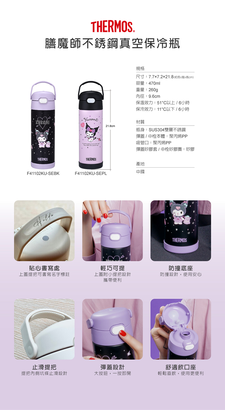 【THERMOS膳魔師】不銹鋼真空保冷瓶_F411系列_470ml_酷洛米邱比特